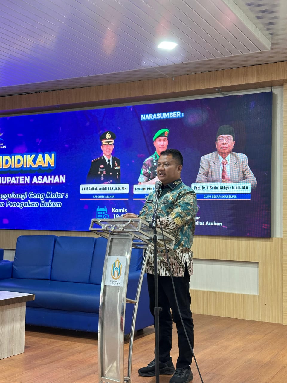 Hal itu disampaikan Wakil Bupati Asahan Rianto SH, MAP ketika menghadiri seminar pendidikan strategi multi pihak dalam menanggulangi geng motor yang diselenggarakan Dewan Pendidikan Asahan di Aula Zulfirman Siregar Universitas Asahan, Kamis (19/06/2025).