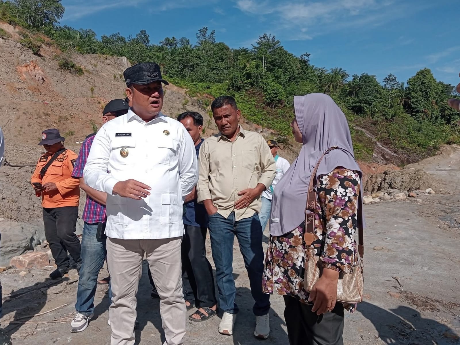 (Wabup Asahan Rianto SH, MAP bersama sejumlah OPD meninjau lokasi tambang ilegal yang longsor dan menelan korban jiwa.)